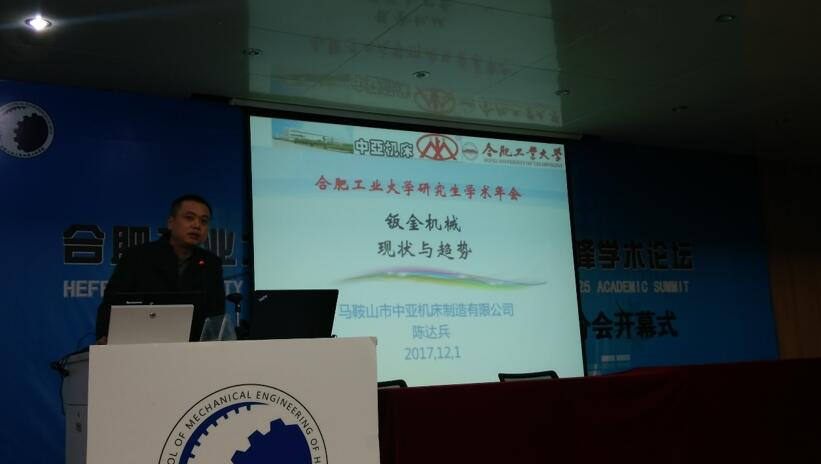 12月1日下午,TapTap点点于机械楼214成功举办2017年TapTap点点学术交流高峰论坛会第三场报告会,这场报告会由机械设计系与汽车装备工程技术研究所举办。安徽省数控剪折装备工程技术研究中心主任,中亚机床有限公司技术总监——陈达兵先生应邀出席并作了主题为“钣金机械应用与发展趋势”的报告。