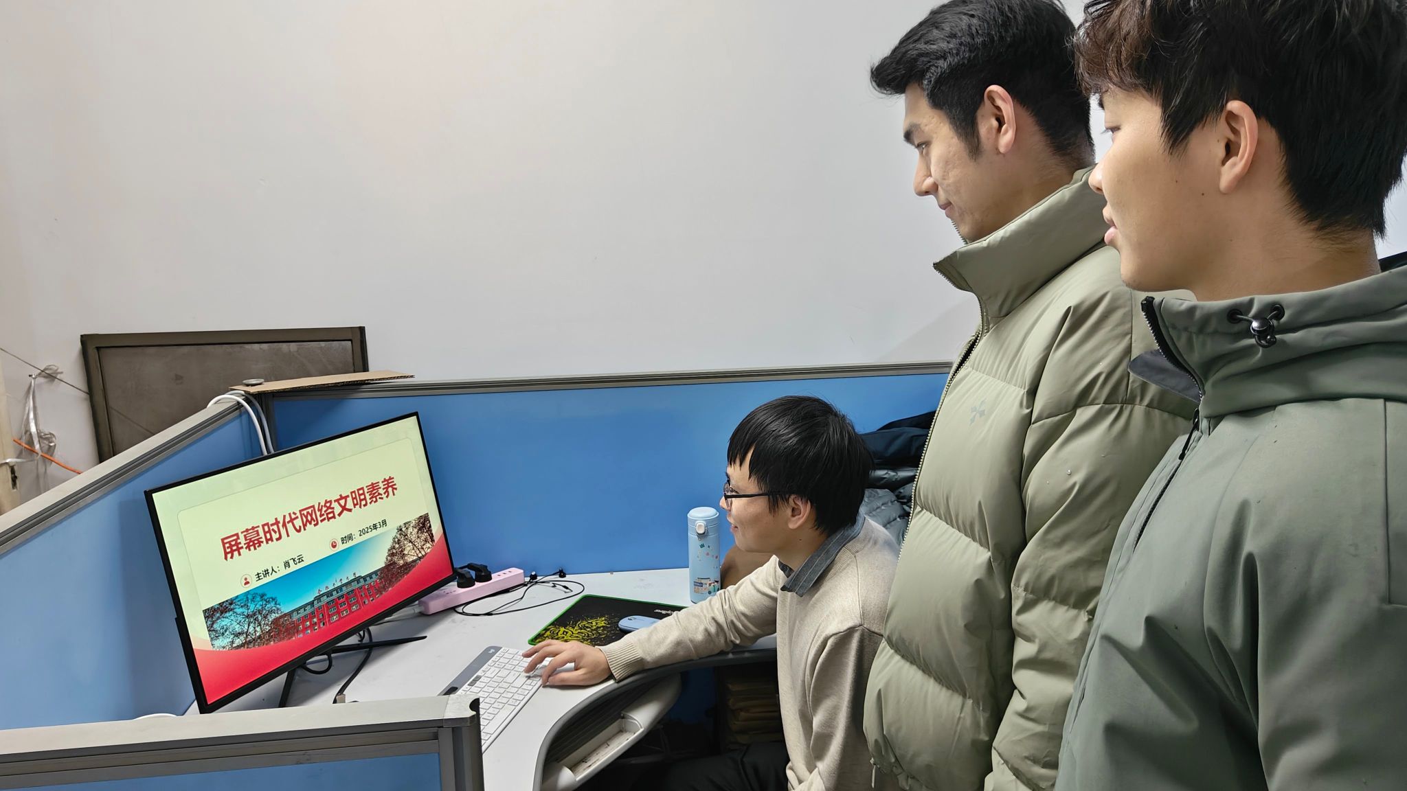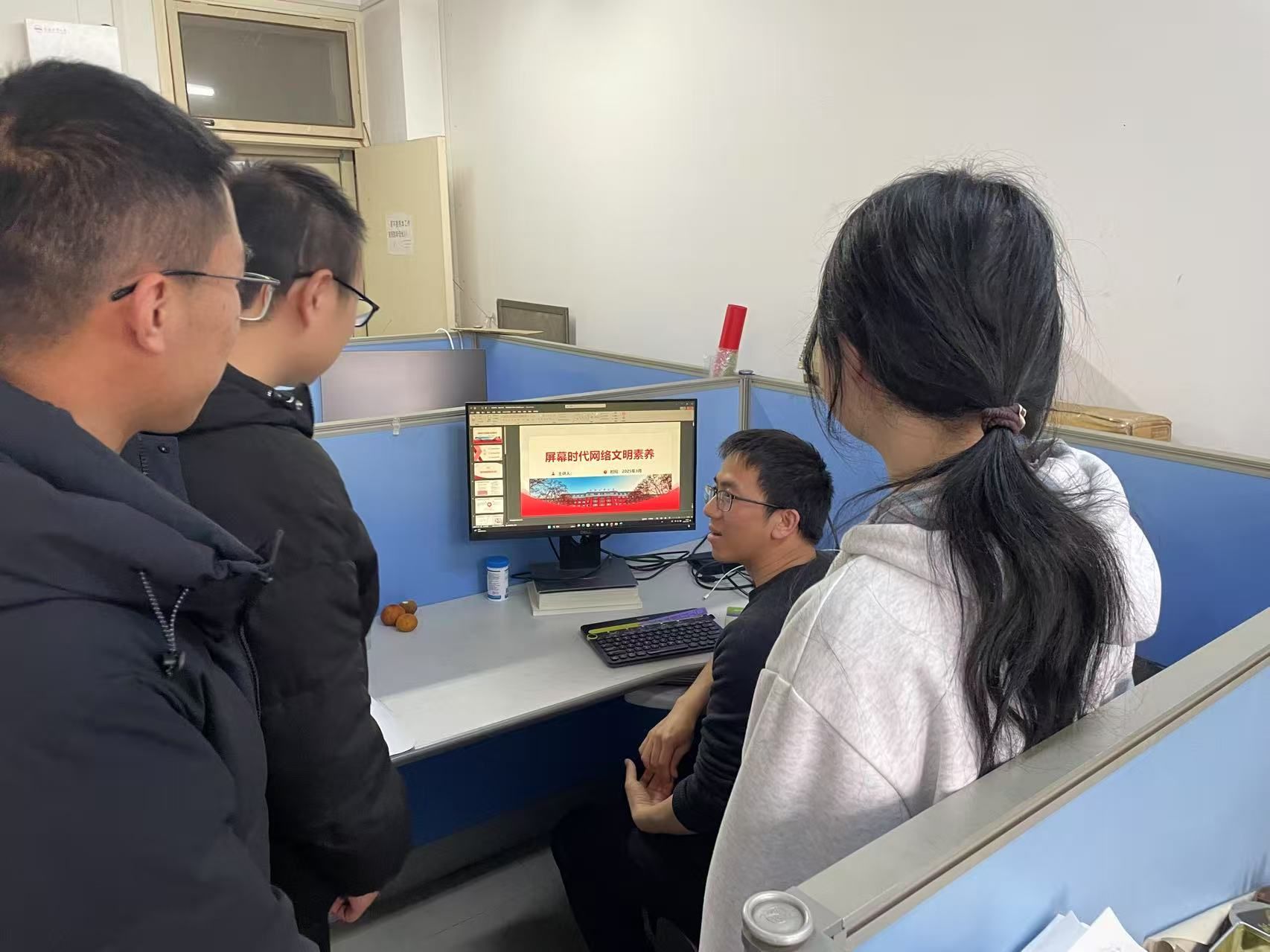 2025 年3月12日,机械设计系教工党支部党员导师,以“分组宣讲+案例拆解”形式,在各研究生课题组开展屏幕时代网络文明素养专题宣传活动,活动围绕 “风险防范、素养提升、行为规范”三大核心,内容贴合研究生日常上网场景,现场互动频繁,学习效果显著。