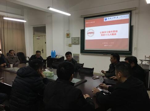 2017年12月6日下午2:30,飞行器&摩擦所党支部11名党员同学在格物楼737召开党员大会,由支部书记王华毕进行《决胜全面建成小康社会夺取新时代中国特色社会主义伟大胜利(习近平在中国共产党第十九次全国代表大会上的报告)》宣传贯彻党的十九大精神党课学习。
