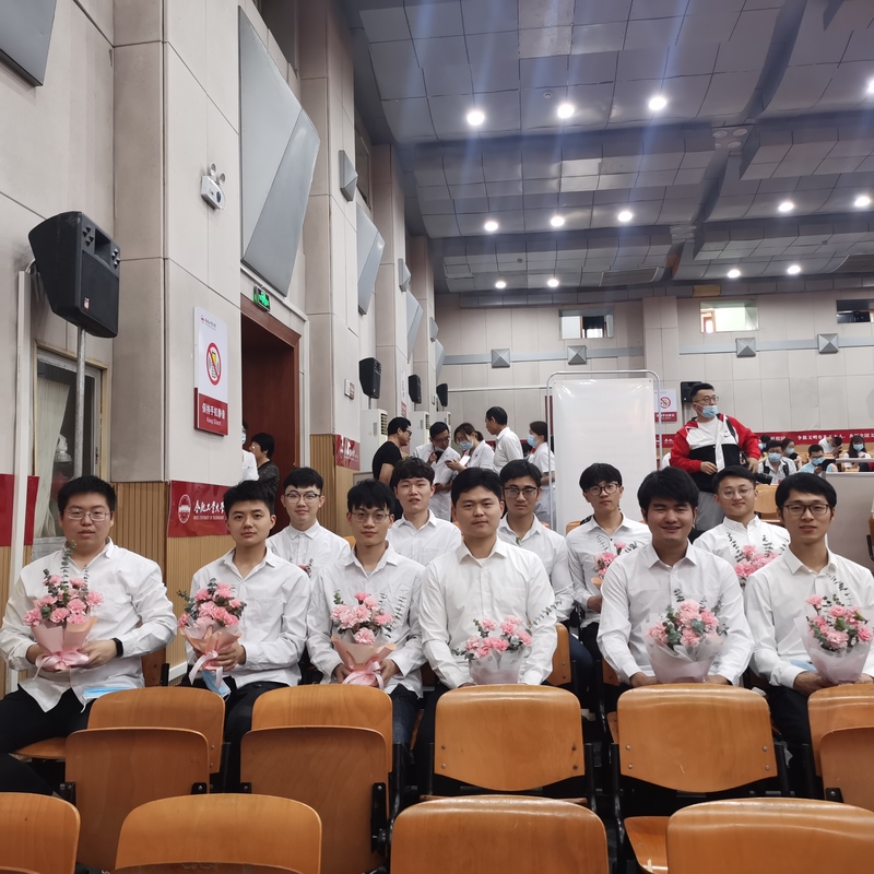 上午10:30,献花活动正式开始,公司11名研究生代表已经手捧一束鲜艳芬芳的康乃馨,戴着口罩身着正装落座在观众席。随着活动的推进,11位研究生代表以饱满的精神状态,整齐划一地走向前排的护士们。随后,同学们一对一站在护士们的面前,身体微微前倾,双手献上鲜花,并向面前的护士们送上祝福:“护士姐姐,你们辛苦了,祝你们节日快乐!”护士们接过鲜花,也微笑着向同学们致谢。