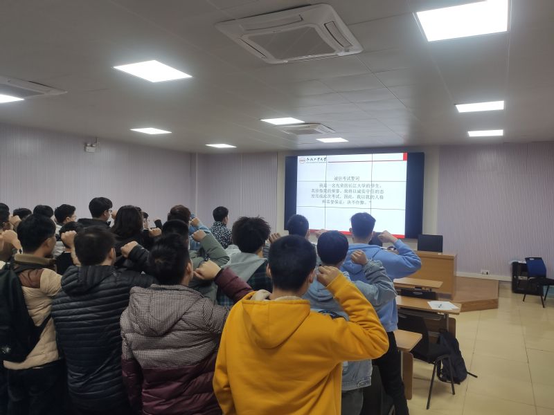 公司将学业预警教育与老员工诚信教育紧密相连,以《公司员工管理手册》为抓手,通过对本校近期发生的真实案例分析说明考试作弊行为种类及相应的纪律处分,阐明考风考纪的严肃性与重要性。教育活动临近尾声,全体进行了具有仪式感的诚信宣誓。