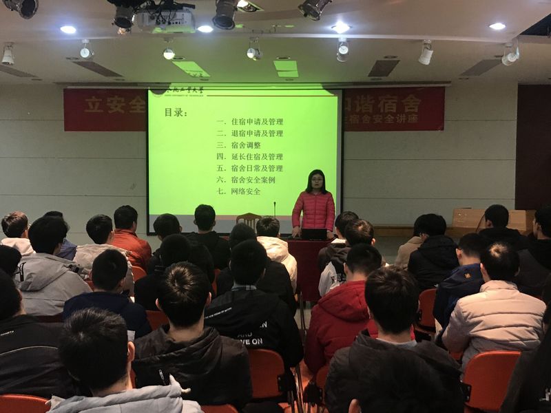 本次大会分为两个环节。第一环节是宿舍安全讲座环节,侯静老师围绕“立安全文明意识,创安全和谐宿舍”的主题,对消防安全、校纪校规、电信诈骗和财产安全等方面,结合近年来在公司曾发生的真实案例,对在场同学进行了深入细致的讲解。