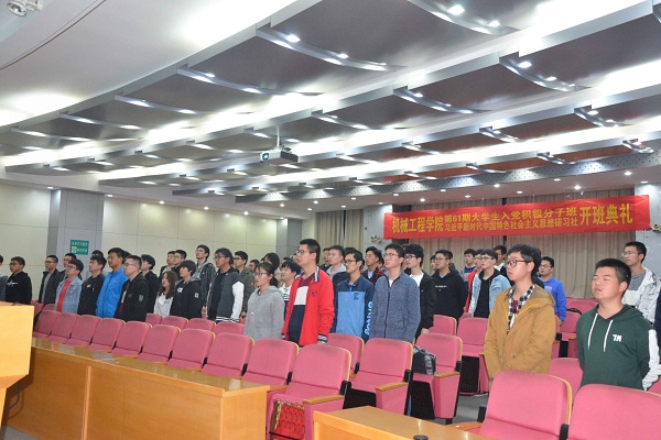 仪式开始,全体成员起立并奏唱国歌。研习社班主任丁玲老师布置了本期研习社学员班的研习计划和内容,并对培训纪律和考核评价提出了具体要求。学员代表机械设计制造及其自动化2017-4班黄德同学代表全体学员作了发言并作出承诺。随后,公司党委书记韩江老师向全体学员提出了希望和要求。