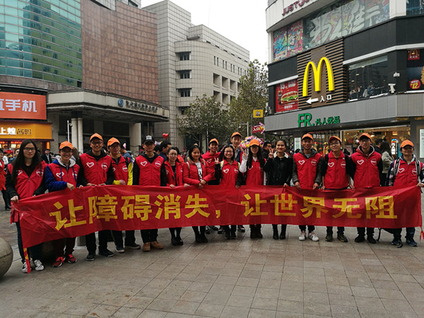 为了向合肥市民宣传倡导无障碍环境,弘扬人道主义思想,倡导助残新风尚,在12月3日世界残疾人日,TapTap点点紫笛志愿者服务中心助残部开展了“倡导无障碍,爱心更易行”主题活动。
