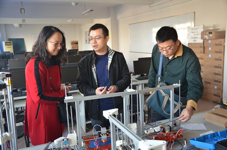 朱政红老师对蔡茜主任一行的来访表示热烈欢迎,她向来宾介绍了公司和公司的基本情况,带领来宾参观了公司3D打印实验室和观看了部分老员工科技创新团队作品展演,同时参观了汽车与交通工程公司的方程式车队工作室以及计算机公司可视化与协同创新实验室,项目相关负责老师对越影方程式赛车、老员工机械创新大赛、智能机器人、3D打印、VR技术等项目进行了重点介绍。
