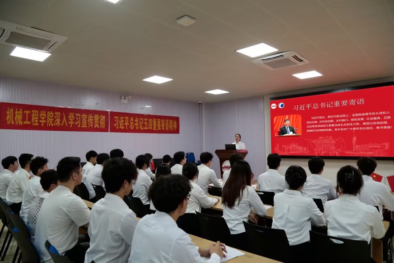 会议中,公司团委书记尹佳婧老师领学习近平总书记对新时代青年重要寄语,并分享学习体会。她表示,习近平总书记对青年的殷殷嘱托,让人倍感温暖、倍受鼓舞、倍觉责任在肩。机械学子要牢记嘱托,着力打造青春机械、奋斗机械、创新机械、责任机械,为工业强国汇聚机械“青”动能。