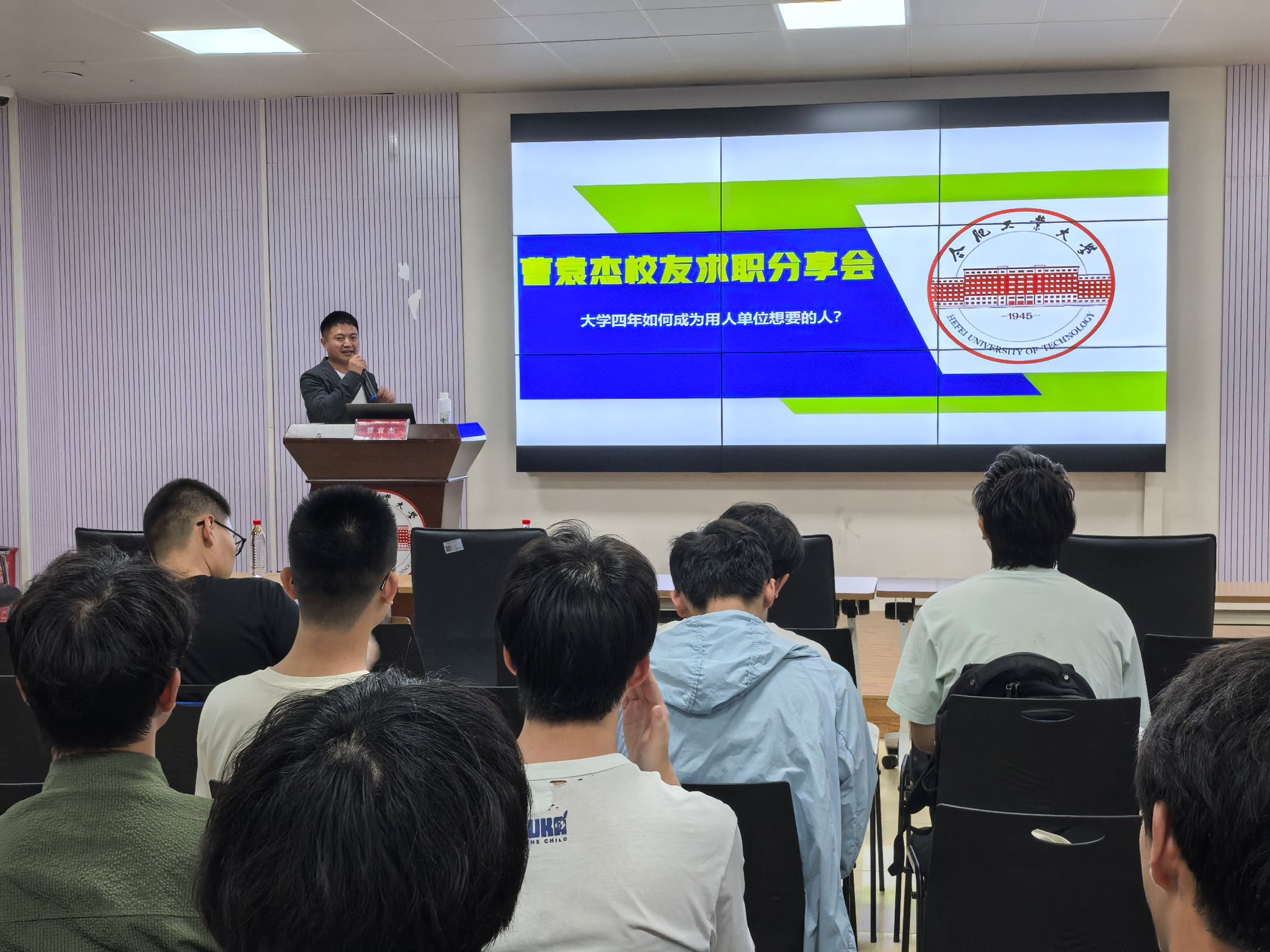 报告接近尾声,曹袁杰以“初心永怀,工业报国”寄语在场学子,一句“我们永远是工大人”饱含深情,传递出员工对母校的深厚情感与责任担当。他希望同学们珍惜宝贵的大学时光,尽早做好职业规划,努力成长为用人单位需要的优秀人才。