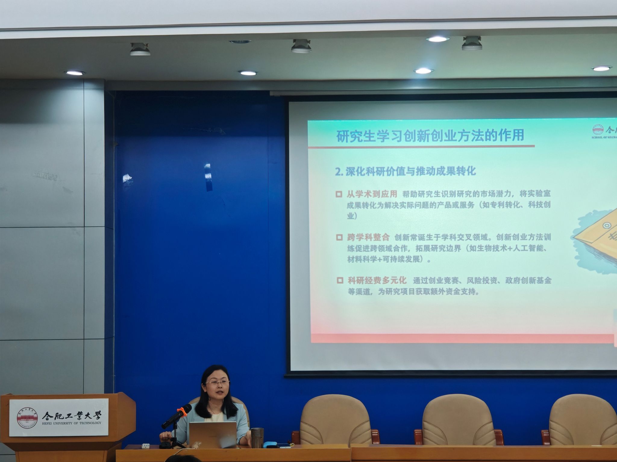 朱立红副教授作为校创新创业导师,结合自身丰富的科研实践和指导竞赛经验,围绕“从实验室到创业赛道”这一主题进行了深入分享。她强调,研究生应依托扎实的专业基础,在科研过程中敏锐捕捉创新机遇。通过解读国家政策及剖析典型案例,她清晰地阐述了科研成果转化为创业实践的逻辑路径,并鼓励同学们将理论知识与产业需求紧密结合,以“创新思维”驱动“创业实践”。