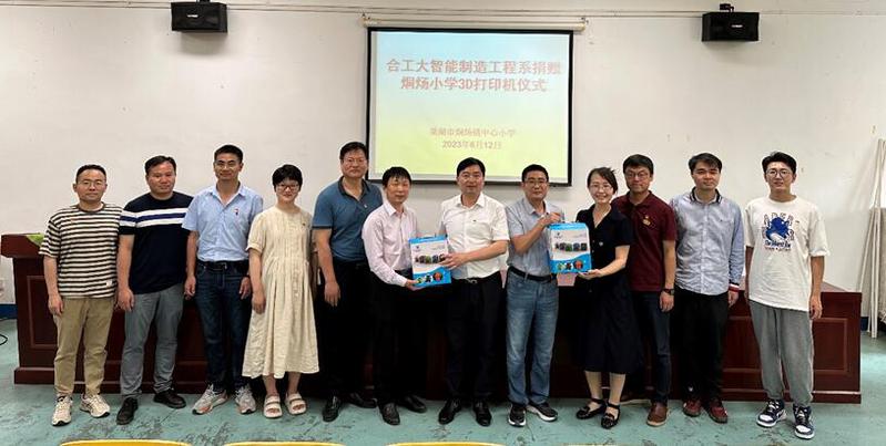 首先在烔炀镇中心小学举行了智能制造工程系捐赠烔炀小学3D打印机仪式,烔炀小学朱迎兵董事长对捐赠表示衷心感谢,期盼3D打印设备能够为中小员工科创兴趣、动手能力和创新思维培养起到积极的促进作用。