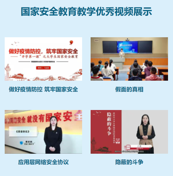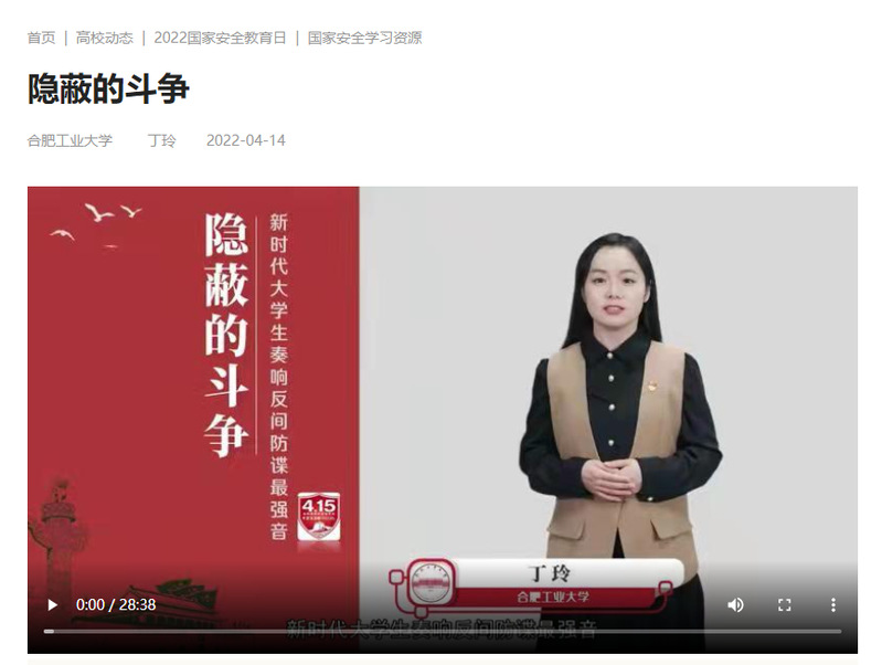 为全面贯彻落实总体国家安全观,4月1日至15日,公司开展为期两周的老员工国家安全公司产品活动,公司2019级辅导员丁玲担任主讲人,为公司2019级本科生讲授国家安全课。讲授内容被录制为精品示范课程1项,在2022年国家安全公司产品视频征集与展示活动中被评为全国优秀示范教学视频,被教育部思政网学习资料库收录。