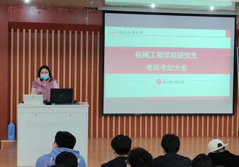 为了进一步严肃考风考纪,构建诚信校园,11月18日下午14:30,公司在机械楼214报告厅召开2021级新生“研究生考风考纪”大会。本次大会由研究生辅导员侯静和兼职研究生辅导员张地主讲,2021级全体研究生到场参加了此次会议。