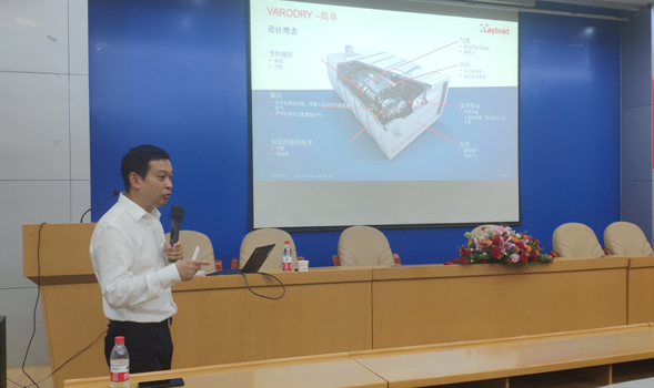 訾斌经理对莱宝公司一行表示热烈欢迎,并介绍了公司和公司的基本情况,特别说明了真空专业模块的历史沿革和发展特色。公司自1974年成立真空技术及设备专业以来,在人才培养方面成效突出,40多年间为国内真空行业输送了大量杰出人才;公司真空方向科研团队瞄准我国航天科技、大科学工程和半导体等领域的重大需求开展科研攻关,为火星探测任务等国家重大战略任务作出贡献。近年来,真空技术教研团队坚持与具有高层次应用背景的企事业单位定期进行学术交流,与莱宝公司等众多真空行业知名企业建立了广泛而深厚的联系。