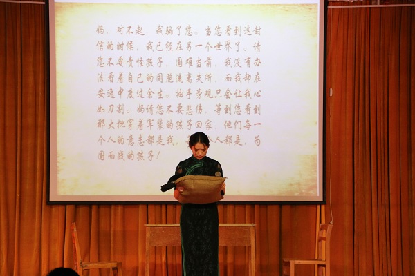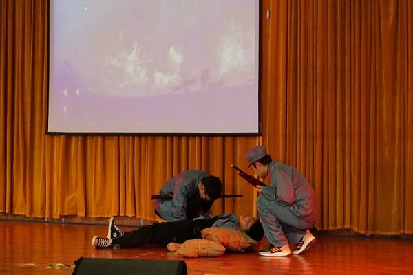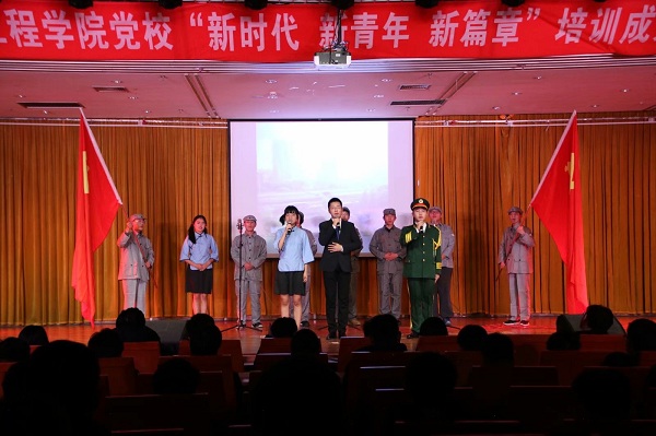 此次汇报演出共有三个篇章,分别以“ 烽火历程 忆苦思甜”、“回首过往 峥嵘岁月”和“追梦青年 奋斗向前”为分主题。同学们用精彩的表演生动形象地展现了革命先烈赤诚的爱国之心,前辈学者坚韧的开拓精神,以及新时代青年沸腾的奋斗热血。演出在公司党校体验式教育培训原创音乐文化产品《感受新时代》中拉开帷幕,精彩的说唱表演,将现场气氛引燃。第一篇章中,话剧《这是你的战争》将观众们带回那个战火纷飞的年代,让同学们体会到当时的有志青年投笔从戎的满腔壮志;朗诵《致敬革命引路人》以故事为载体,突出对革命先烈的追忆,引人深思;配音《献“声”革命》里的革命影视情节,出色的配音引起了观众的共鸣,现场爆发出阵阵掌声,气氛持续高涨。