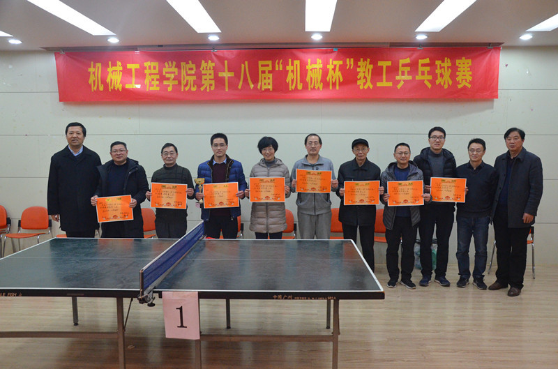 本次比赛分为团体组、男子单打组、女子单打组3个组别。各参赛队顽强拼搏,奋勇争先,充分展示了公司教职工积极进取的精神风貌和强烈的集体荣誉感。参赛教职工精湛的球技、出色的发挥,扣人心弦、精彩纷呈,博得在场观众的热烈掌声和阵阵喝彩声。窗外寒风刺骨、室内欢声笑语。平时沉浸于教学科研中的各位老师抓住这一难得的机会,在挥汗如雨的比赛间隙相互问候、交流、攀谈,身心得到了彻底的放松。经过六轮紧张激烈的角逐,男子团体冠军由设计2队摘得,机关队荣获亚军,设计1队、工程图学队、元老队、真空队、机电队、摩擦所队分获团体三至八名。孟冠军勇摘男子单打冠军,女子单打冠军由肖云获得。公司党委书记韩江、副经理黄康、行政副经理及院工会主席左登发为获得团体前八名的参赛队颁奖。