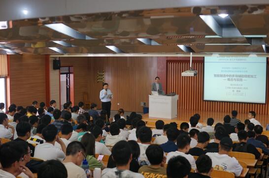 吴勇波教授在报告中,首先简要的介绍了精密加工--“中国制造”皇冠上的明珠。然后围绕精密/超精密加工新形势下遇到的瓶颈展开了话题,进一步提出多能量场辅助加工是解决精密加工在新形势下所遇难题的有效手段。通过对多能量场辅助精密加工计算的原理、装置、基本特性的掌握,为精密加工的技术升级打好基础。此外,吴勇波教授介绍了多能量场辅助精密加工的国内外研究现状、趋势和行业应用。吴勇波教授就报告中一些问题与在场师生展开深入交流,使机械公司师生受益匪浅,受到大家一致好评。约200余名师生参加了报告。