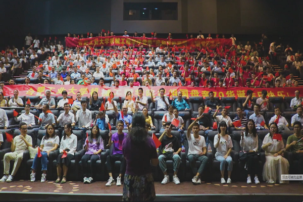随后,公司党委组织党员开展了《我和我的祖国》观影活动,员工党员身着红色文化衫在座位上组成了“70”的图案,献礼祝福告白祖国。《我和我的祖国》整部电影从《前夜》、《相遇》、《夺冠》、《回归》、《北京你好》、《白昼流星》、《护航》等七个故事构成,影片聚焦了1949年开国大典,母亲诞辰后,当普通的中国人与国家大事件相遇在一起,碰撞出来的能量,凝结着不平凡的中国人民,用真心、用实情、用光影讲述的每一个我和祖国的故事,他们用温暖、用情感,把我和我的祖国连接了起来,让我们感到了祖国的强大,感受到了祖国的温度,回顾这70年峥嵘岁月,每个艰苦奋斗、平凡而伟大的中国人民与祖国息息相关的共同记忆,为大家搭起了解祖国历史进程的纽带。