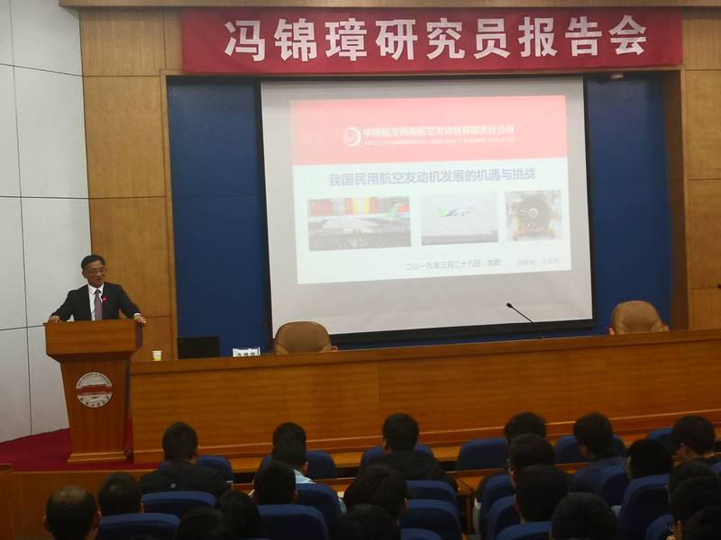上午,冯锦璋与公司领导、相关教授、科研团队进行了座谈,听取了公司相关科研工作介绍,重点对我国航空发动机自主研发过程及其存在的若干“卡脖子”技术问题进行了介绍,与公司相关教授进行了互动交流,通过交流,公司将加强与中国商发的合作,进一步瞄准国产大飞机、航空发动机等国家重大需求,凝练科研方向,力争为国家的重大战略需求服务。下午,冯锦璋通过公司的学术交流活动品牌“机械大讲堂”,做了题为“我国商用航空发动机发展的机遇和挑战”的报告,公司相关科研团队师生200余人听取了报告会。公司党委书记韩江教授、经理訾斌教授、副经理黄海鸿教授参加了相关活动。来校期间,公司党委副书记陈刚会见并看望了冯锦璋总经理,校统战部部长姚跃传参加了会见。