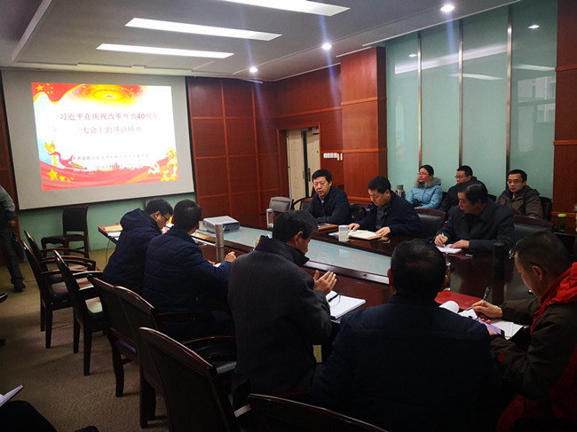 12月19日上午,公司党委在格物楼308召开理论学习中心组(扩大)会议,专题学习习近平同志在纪念改革开放40年大会上的讲话精神。参加会议的有公司领导班子成员、党委委员、教工各支部书记、各基层二级单位负责人。会议由公司党委书记韩江同志主持。