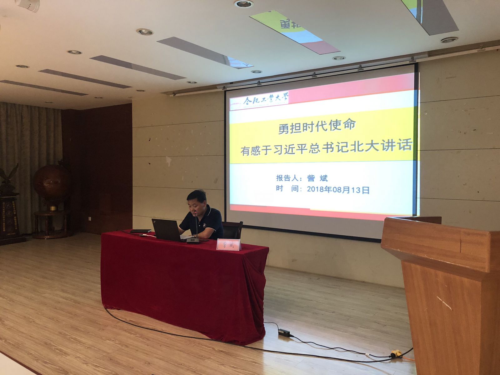 8月13日下午14时,经理訾斌教授在格物楼316为公司研究生党员骨干代表上以《勇担时代使命,有感于习近平总书记北大讲话》为题的思政课。