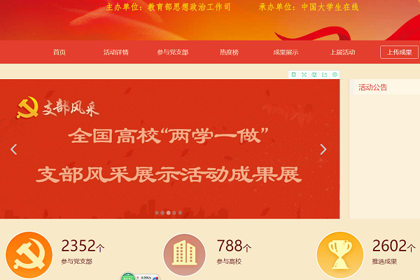 教育部及中国老员工在线“两学一做”学习教育支部风采展示活动页面