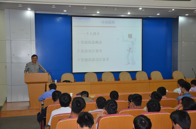 报告开始之前,訾经理先向大家介绍了王德伦教授的成就。接下来,王教授从“机构分析与综合”“精度设计与检测”和“结构与性能设计”三方面出发,结合他本人的多个自然基金项目和机床重大专项课题,向大家简要介绍了他一直以来在机构的运动几何学方面的研究工作。之后,王德伦教授以美国波士顿动力公司的招牌智能机器人“大狗”为例,重点探讨了他对于人工智能在机械设计特别是机器人领域的深入应用方面的思考。他指出,机械设计已经从数字化设计时代进入智能化设计时代,如何从内涵和组成等多个角度去理解智能机械设计的意义显得尤为重要。最后王德伦教授对智能机器人未来的发展进行了展望,他认为,智能机器人的应该具有自主生存能力,因此如何利用人工智能技术来自主获取能量或可成为机器人领域未来的一个重要研究方向。