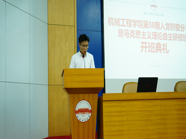 开班典礼由公司党委副书记、副经理郑召丽主持。研修班班主任刘洋布置了本期学员班的研修学习计划,对学习纪律和考核评价提出了具体要求。学员代表机械设计制造及其自动化2016-1班徐宸阳同学作了发言。随后,公司党委书记韩江向全体学员提出三点希望和要求:一是希望同学们充分利用自主研修的重要载体,做马克思主义的坚定信仰者和忠实实践者,树牢坚定不移跟党走的信念和信心;二是希望同学们自觉担当使命,坚定走中国特色社会主义道路的理想信念;三是希望同学们刻苦学习,练就过硬本领,做新时代的有志有为青年。