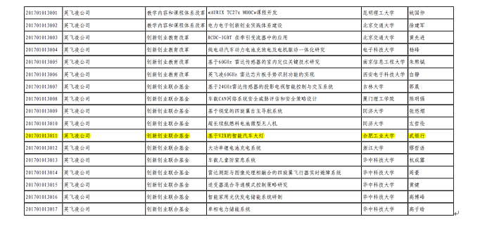 为贯彻落实《国务院办公厅关于深化高等公司创新创业教育改革的实施意见》文件精神,教育部组织有关企业支持高校共同开展产学合作协同育人项目。此项目的资助企业英飞凌公司系全球顶级的汽车电子芯片及部件的研发和制造企业,其借助教育部创新创业平台,与中国多所高校开展了汽车电子与控制领域产学项目合作。项目创新了产学合作协同育人机制,进一步加强了员工创新精神和工程实践能力的培养,提高了人才培养质量。