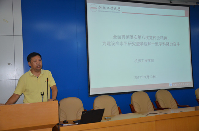 公司党委书记韩江作了题为《全面贯彻落实第八次党代会精神,为建设高水平研究型公司和一流学科努力奋斗》的报告,他首先带领全院教职工重温了校第八次党代会的主要内容和重要精神,结合公司“三步走”的战略目标,提出公司 “三步走”战略,力争在建校100周年之际,机械工程学科进入世界一流学科前列,实现国际知名的研究型高水平公司建设目标,从全面加强党的建设、确保公司各项事业持续健康发展和依托公司实际、培育和强化特色、落实六大发展任务两个大的方面,就公司如何贯彻落实第八次党代会精神的措施方案进行了的详细解读和布置。