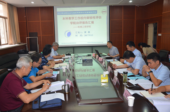 为更好的落实合工大教务函〔2017〕9号文件关于《工作审核评估公司评建工作安排的通知》,公司与2017年9月13日上午在格物楼308会议室举行审核性评估校内预审会。校评估组专家陈翌庆部长、安徽农业大学工公司陈黎卿教授、许明杨主任、校督导组专家高荣慧、机械公司督导组组长桂贵生教授出席了会议,公司领导班子、各二级单位主要负责人、自评报告撰写组成员、经理助理等参加了会议。