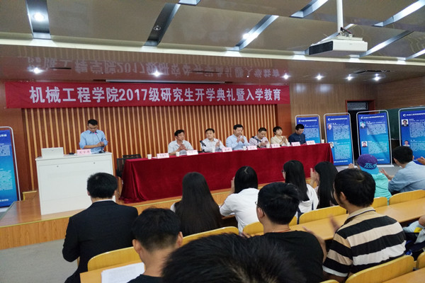 典礼上,2015级机械设计及理论专业研究生邢勇强作为老生代表发言,2017级机械工程专业董王妍作为新生发言。