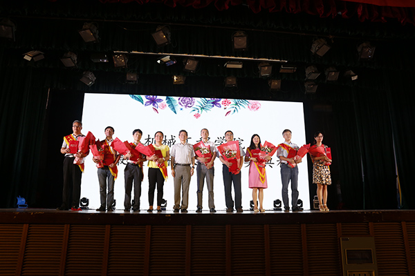 随着晚会的不断深入,终于迎来了历时一个多月、由全体机械毕业生票选出的“最美机械人”——“ 十位最难忘老师”和“品学兼优毕业生”的精彩亮相。老师们在员工献花后也是激动不已,每人用一句话告白机械学子,祝贺2017届机械学子顺利毕业,祝愿他们前程似锦。赵韩、王峰和訾斌分别为“最美机械人”颁奖。