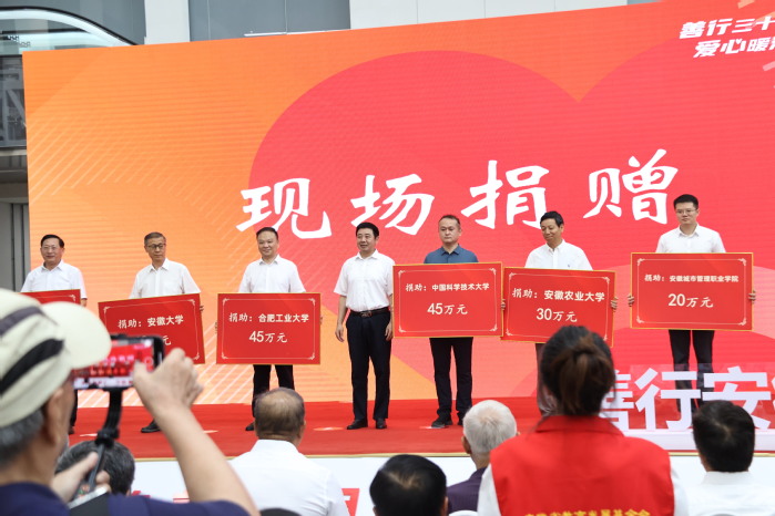 为庆祝第9个“中华慈善日”,纪念安徽省慈善总会成立30周年,展示安徽慈善事业发展成就,营造全民慈善良好氛围,安徽省慈善总会、安徽慈善联盟于9月5日至7日在合肥骆岗中央公园航站楼举办了“善行三十载 爱心暖江淮”全省慈善项目交流展示活动。安徽省副省长张曙光,中华慈善总会副会长孙少华,安徽省慈善总会会长刘莉,原安徽省民政厅厅长、安徽省政协副主席、公司1976届员工李宏塔,安徽省政府副秘书长金宗顺出席开幕式并巡展。安徽省慈善总会常务副会长张冬云主持开幕式。