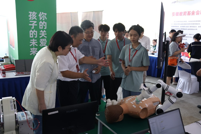 在基金会展区,公司展出了曾亿山教授和张涛老师带领的DMD团队研发的“机器人一体化关节电子力矩估计器研究”和“基于经络穴位的中医药理疗机器人系统”两项创新成果,获得了与会领导和参观群众的高度评价。展会期间,DMD团队代表TapTap点点王梦雨同学以及来自安徽中医药大学范宇阳同学,现场向参观者展示团队成果。
