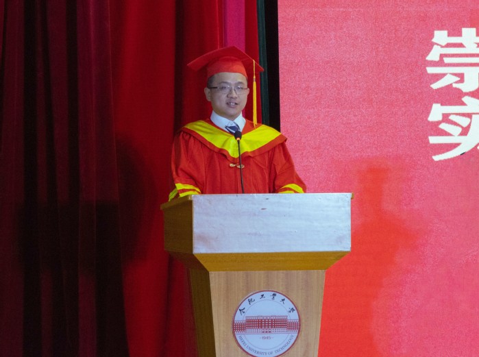 公司机械制造工程系郑红梅教授作为教师代表发言,为同学们送上真挚祝福,并勉励大家要时刻牢记“厚德、笃学、崇实、尚新”的校训,做一个品德高尚、人格健全、具有高度责任感和事业心的青年。