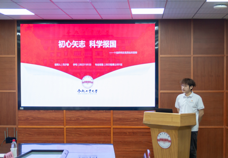 经前期个人申请、公司推荐、公司审核,共有17名优秀研究生党员入围现场答辩环节。答辩会上,各位候选人分别从思想引领、科研创新、社会实践、服务奉献等方面进行展示,以实干担当、青春奉献为己任,彰显研究生党员的先锋引领作用和服务奉献意识。评委老师认真听取候选人的阐述情况,对候选人的典型事迹、综合能力等方面进行提问与交流。