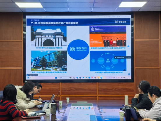 公司研讨会由教学经理赵萍主持,邀请了包括国家级、省级一流课程在内的十余门课程负责人,参加课程建设研讨。学堂在线和超星教学平台的主要负责人,介绍了人工智能背景下AI课程的建设方案,并且解答了老师们关于知识图谱、AI助教、AI工具等课程建设内容的提问。接下来,参会老师就AI课程建课步骤与方法、知识图谱赋能教学、AI工具应用场景、AI数字人制作等主题开展了深入的交流与讨论;搭建了课程建设框架,梳理了课程教学资源,并确定了下一阶段推进计划。