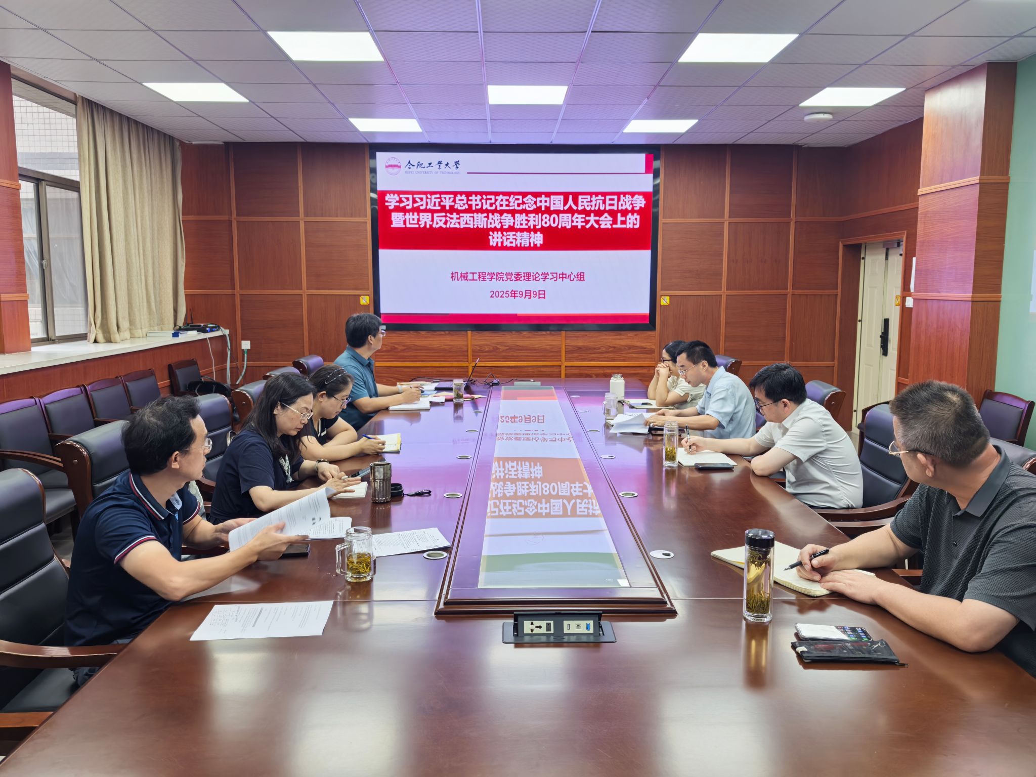 祖磊领学了习近平总书记在纪念中国人民抗日战争暨世界反法西斯战争胜利80周年大会上的讲话精神、习近平总书记重要指示精神、8月29日中共中央政治局会议精神;蔡伟伟领学了习近平总书记在听取西藏自治区党委和政府工作汇报时的重要讲话精神、习近平总书记在党外人士座谈会上的重要讲话精神、习近平主席向世界青年和平大会致信精神;赵萍领学了《弘扬伟大抗战精神,向着中华民族伟大复兴的光辉彼岸奋勇前进》。