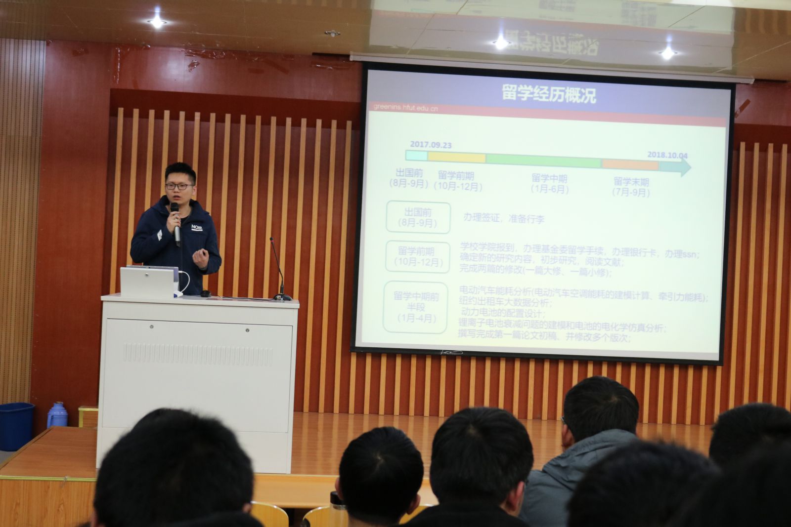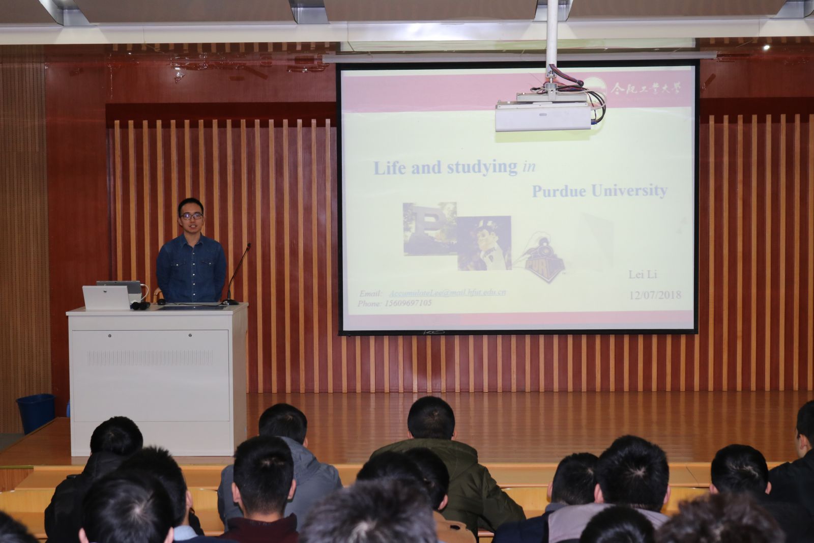 7点交流会准时开始,交流会由熊玮博士主持。会上,李磊博士首先就自己申请普渡大学所做的一些准备与同学们进行了分享,包括英语水平测试、个人简历等方面经验的分享。随后李磊博士向同学们介绍了自己所申请的大学——普渡大学。普渡大学是世界著名高等学府,美国一级国家大学,著名的“公立常青藤”盟校成员,其主校区位于美国印第安纳州西拉法叶市。随后,李磊博士通过PPT向大家展示了自己在普渡大学的科研以及日常生活,并在最后向大家展示了自己在普渡大学这一年的科研成果以及在美国生活的一些注意事项。之后,张城博士介绍了自己所申请的大学——凯斯西储大学。凯斯西储大学是世界著名高等学府,是一所以独立研究闻名的世界顶级私立大学,美国一级国家级大学,位于俄亥俄州的克里夫兰,是俄亥俄州名副其实的第一学府。张城博士首先介绍了自己所在的实验室的一些基本情况,同时分享了自己在美国日常生活中所发生的一些趣事,在最后向同学们展示了自己在凯斯西储大学交流一年的科研成果。在两位博士分享完自己精彩的访学经历之后,两位博士又对同学们关于访学相关的问题进行了答疑。
