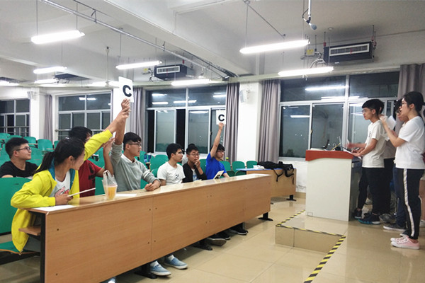 比赛前,参赛选手自由组成九支队伍,在比赛中以小组形式进行比拼。比赛共包含三个环节。首先,采用笔试作答的形式对参赛选手的基础知识进行了考察,所得分数作为小组的基础得分。第二个环节采用限时答题的形式,各个小组按照得分高低顺序轮流进行口头答题,在5分钟时间内答对题目得分、答错扣分。根据前两个环节的最后得分,在九个小组中选取得分最高的两个小组晋级进行第三个环节的决赛。决赛采取抢答的形式,两队成员对随机题目进行作答。经过激烈的角逐,最终,肖培乾、宋有任、葛灵宇代表队获得了比赛第一名,万淼、吴昶晖、韩世林代表队获得第二名。