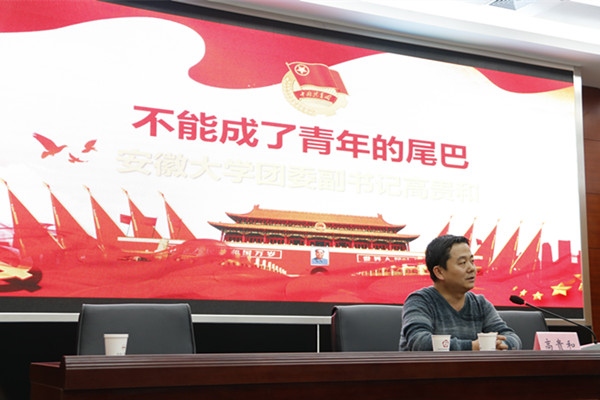 入团仪式结束后,进行了斛兵青年公司公司分团校的第一次授课,邀请到了安徽大学团委副书记高贵和老师,他以《不能成了青年的尾巴》为题,将马克思主义思想与中国优秀文化相结合,以自身经验为例,为在座的青年团员详细讲解了在成长过程中如何应对迷茫、如何面对挑战、如何做好员工骨干等问题。高老师“有志、立志、尽志”的观点得到广大团员的认可,鼓舞青年团员省察己身,积极上进,争做青年领袖。