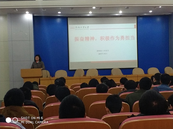 11月27日至12月1日,主题为“振奋精神,积极作为勇担当”十九大精神宣讲小班辅导在2015级本科生中开展,辅导员尹佳婧为主讲人。在辅导会开始,辅导员先对十九大及十九大报告的基本情况进行介绍,结合视频、图片的形式,当前国内和国际形势,带领全体员工就十九大报告中重要内容进行学习,对十九大中的一些新提法,新理念,新战略重点进行了解读。