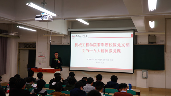 12月1日,翡翠湖校区党支部书记刘洋在五教208主讲并录制了《我眼中的十九大》专题微党课,刘洋以十九大报告为主要内容,从习近平新时代中国特色社会主义思想为切入点,生动形象地讲述了十九大精神带给我们的强大动力和宏伟蓝图,现场气氛活跃,掌声不断。后期,公司新媒体中心将对党课内容进行制作和剪辑,在公司微信平台和QQ平台进行推送,确保将微党课做到网络全覆盖。