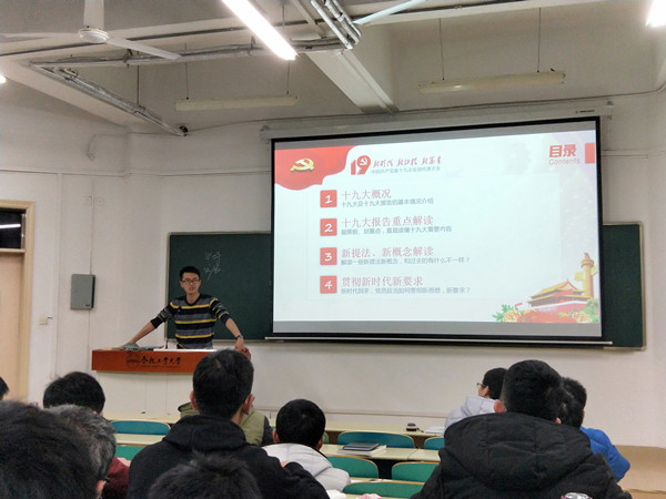 为认真学习、深入领会、大力宣传、全面贯彻党的十九大精神,11月20日-12月4日,2017级分班级开展小班辅导,对十九大精神进行宣讲和解读。