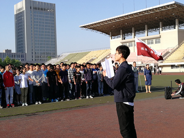 早上7时20分,伴随着《义勇军进行曲》激昂的旋律,鲜艳的五星红旗冉冉升起,全体员工面向国旗庄严肃立,行注目礼,轻唱国歌。之后,员工代表,机械设计制造及其自动化15-2班韩敬伟同学在国旗下发表“大国之崛起,你我之重任”演讲。他先用天宫一号与天宫二号顺利对接引出“中国航天日”的主题,之后又从自身经历和身边小事出发,呼吁同学们关心国家大事,将个人价值的实现与国家民族的前途命运紧密联系在一起,为实现中华民族的伟大复兴贡献自己的力量。最后,他引用了《大国崛起》中的旁白来结束今天激情澎湃的演讲,“一个懂得尊重思想的民族才能产生伟大的思想,一个拥有伟大思想的民族,才能拥有不断前行的力量。”